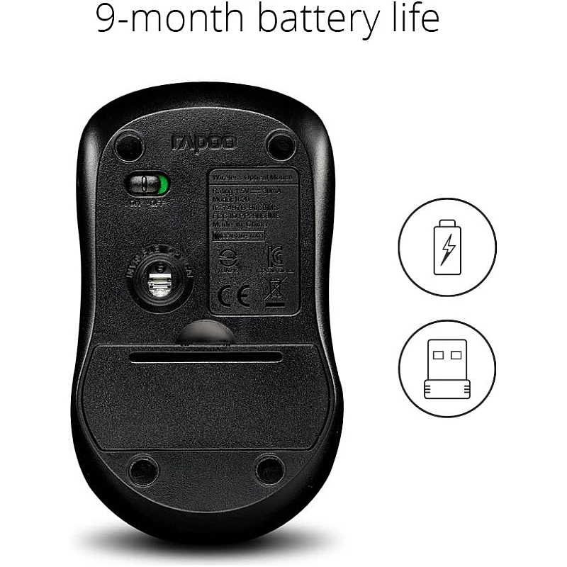 The Rapoo 1620 is designed for instant setup — simply plug the included USB receiver into your computer and start using it immediately. It’s compatible with Windows, macOS, and Linux operating systems, requiring no additional software or drivers.